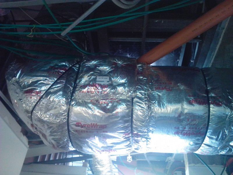 תעלת שחרור עשן חם עטופה בשמיכה קרמית לפי תקן